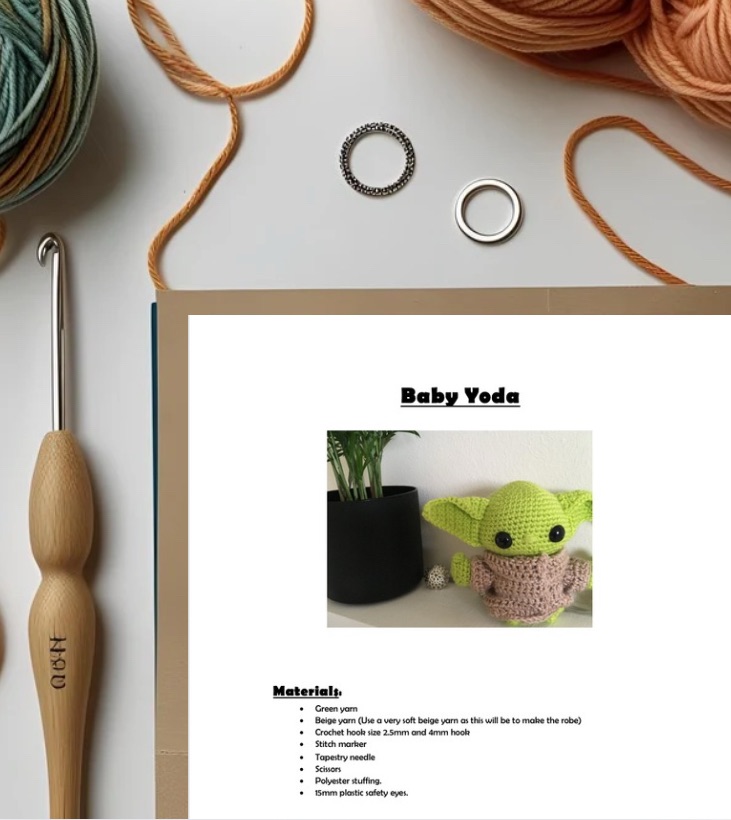 THIS IS THE WAY – for fans of the Mandalorian, or maybe even just Baby Yoda/Grogu, this easy to follow pattern is perfect for making your very own cuddly character.
